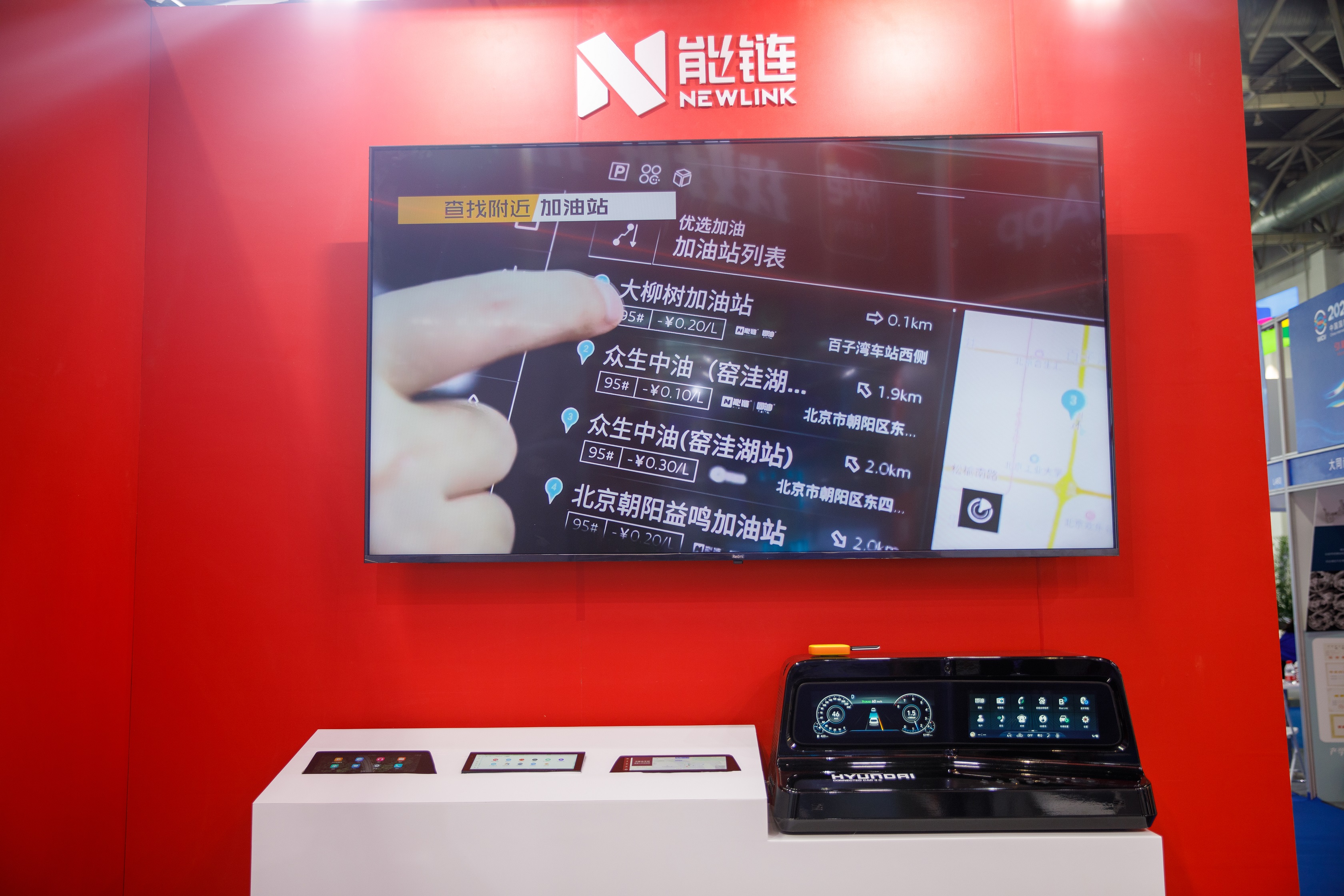 展会期间,能链旗下为车载场景提供能源补给服务的能链车联,展示了包括智能车载终端和企业服务在内的软硬件一体化解决方案和全渠道能源管理服务。