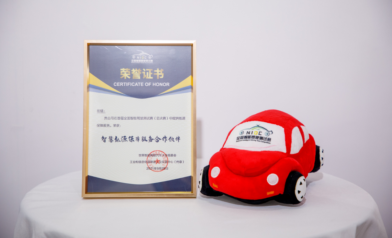 9月28日,为期四天的2021世界智能网联汽车大会暨中国国际新能源和智能网联汽车展览会圆满落幕。作为大会重要的配套活动,首届全国智能驾驶测试赛(总决赛)同期落幕。能源产业互联网公司、全球新能源500强企业——能链为测试赛提供独家能源保障服务。为表彰能链为大赛做出的贡献,世界智能网联汽车大会组委会、工业和信息化部装备工业发展中心联合授予能链“智慧能源保障服务合作伙伴”荣誉。