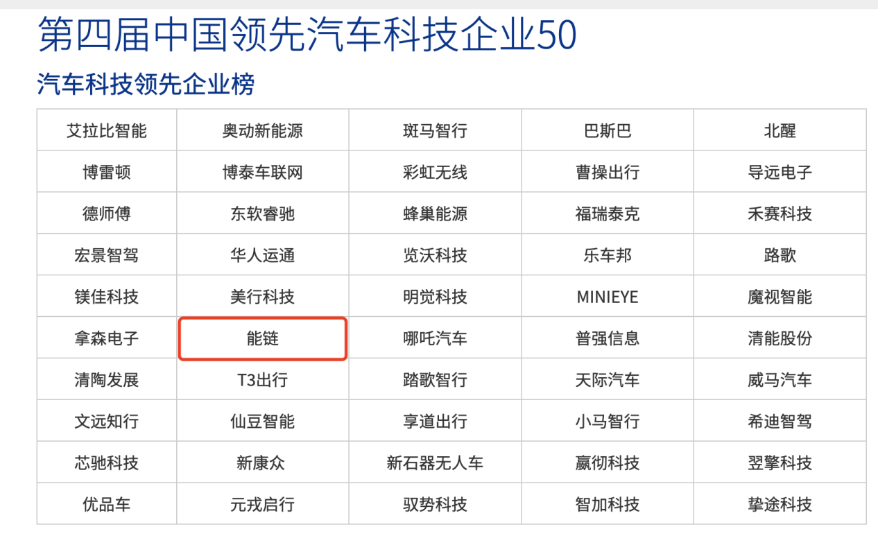 8月4 日,毕马威发布第四届中国领先汽车科技企业 50 榜单,榜单分电动化、出行方式、创新服务和智能网联四个类别。能链以数字化能源网络服务车主的创新实践,入选创新服务类别,这是能链连续第三次入选该榜单。威马汽车、曹操出行等分别入选电动化类别、出行方式类别。